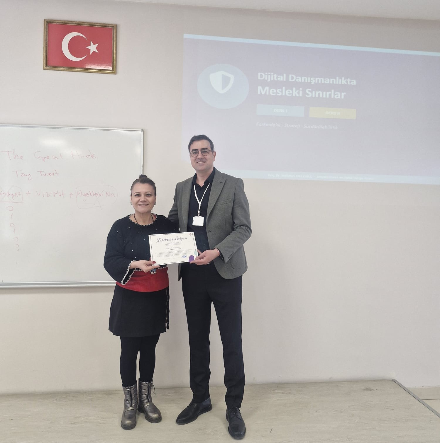Bölümümüz öğretim üyeleri Doç. Dr. Mehmet KIRLIOĞLU ve Doç. Dr. Huriye İrem KALAYCI KIRLIOĞLU, KTO Karatay Üniversitesi'nde "Sosyal Hizmet ve Denge: Dijital Okuryazarlık ve Dijital Danışmanlık Eğitimi" başlıklı TÜBİTAK projesine eğitici olarak katıldı.